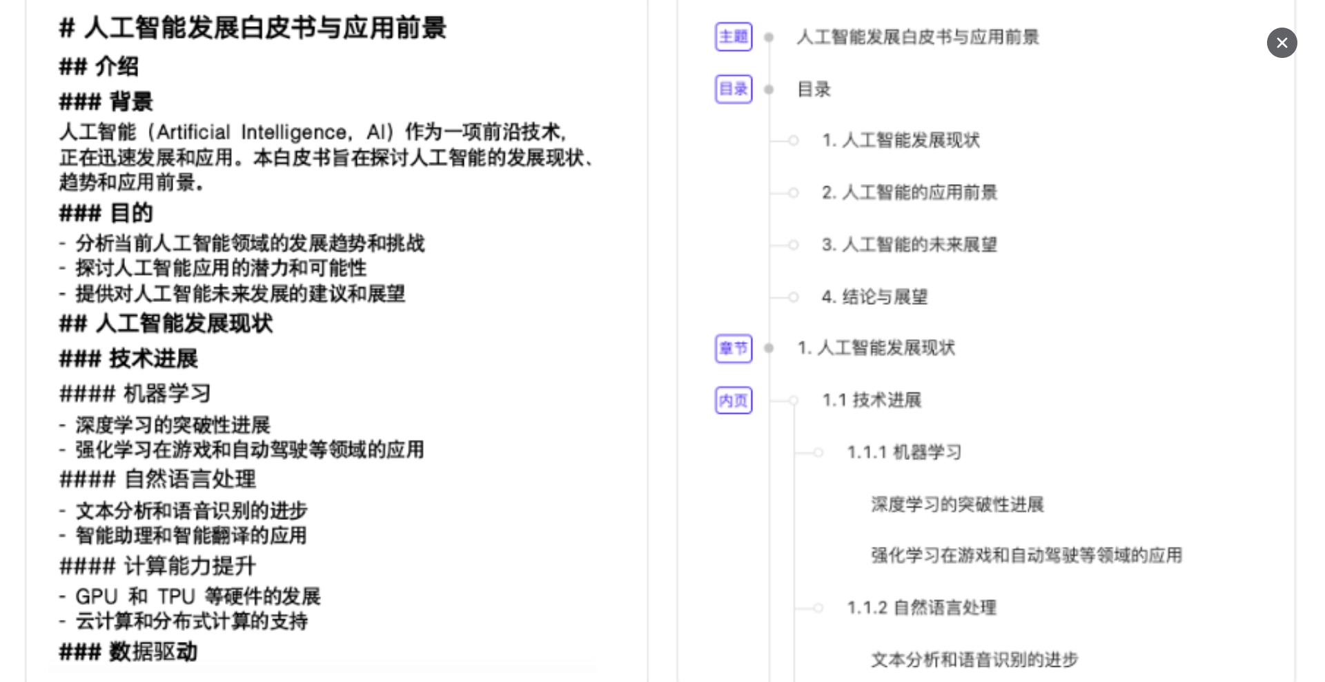 3、软件自动开始读取,并生成PPT大纲,大纲可以自由调整