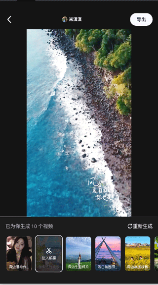 5、有多个风格的视频可以选择,选择好了之后,点击右上角的导出