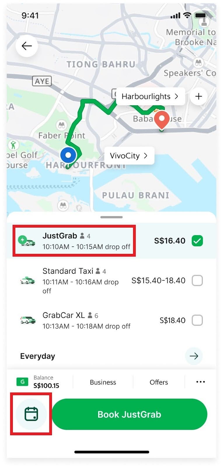 要安排提前预订,请启动您的 Grab 应用程序并按照以下步骤作: