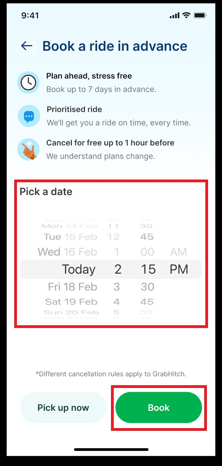 提前预订允许您提前 2 小时到 7 天安排 Grab 乘车服务,让您安心旅行。