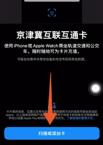 8、跳转到新的页面后,点击页面底部位置的【扫描或添加卡】。
