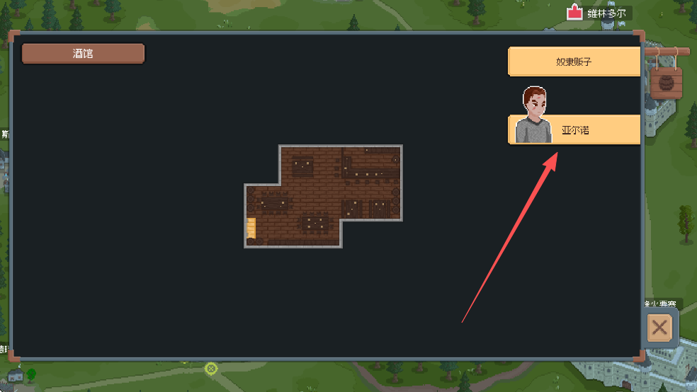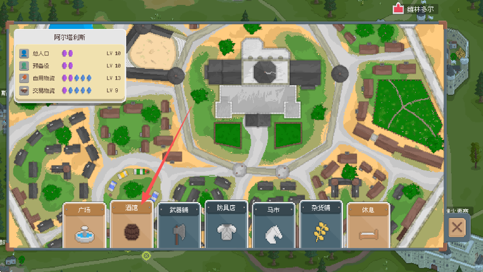 2.抵达城镇后,找到并点击酒馆这一建筑。