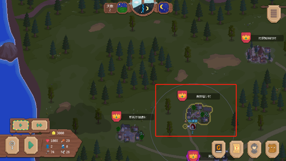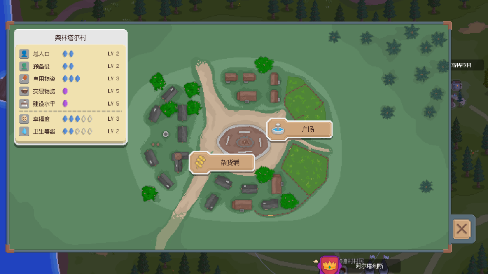 4.进入村庄后,系统会向玩家呈现村庄的基础信息以及可供交互的场景。