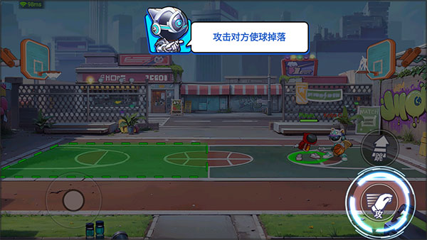 5.若对方持有篮球,点击攻按键发起攻击,可让对方手中的球掉落。