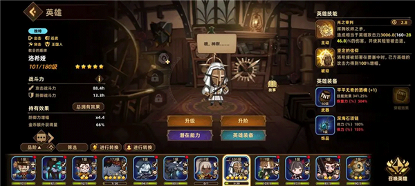 1.初始主角洛伊,系统赠送角色。前期减CD被动作用有限,通关15关左右与爱丽丝搭配效果惊人。装备要求低,等级可缓升,是唯一有全体技能冷却缩减被动的角色,绿卡易满星,值得长期培养。