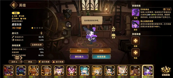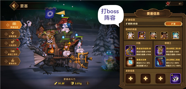 3.boss阵容:鉴于英雄资源有限,在对战boss时,紫色小女巫比机械天使更为实用。尤其要注意,打boss时所选的工具组需具备免伤一次的特性。