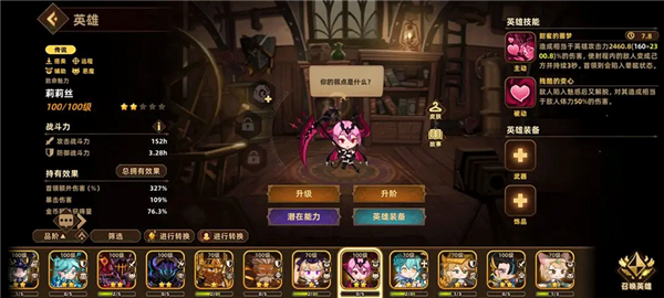 14.控制型角色恶魔镰刀女莉莉丝,以机制取胜的特殊英雄,被动能让被魅惑的敌人直接掉半血。虽技能飞行速度慢,但在火车和鱼人副本中表现出色,对Boss效果待确认。