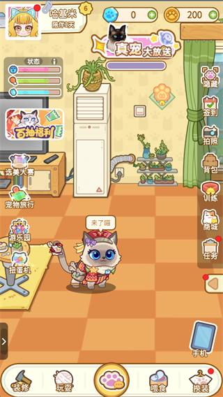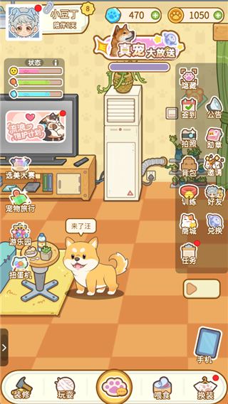 4.核心玩法宠为先,开局可选心仪猫狗品种,围绕宠物状态值展开日常,喂食玩耍训练等操作丰富互动体验