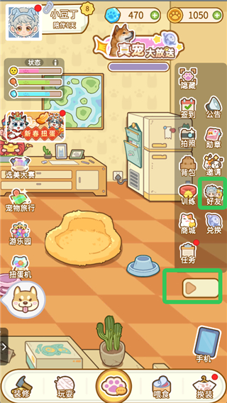 2.进入游戏,玩家日常要留意宠物状态值,像宠物饿了就得喂食,渴了需提供饮水,情绪不佳要陪它嬉戏。