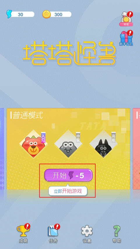 1.点击塔塔怪兽图标开启游戏,映入眼帘的是简洁界面,仅有游戏名与“启动游戏”按钮,点击即可进入。