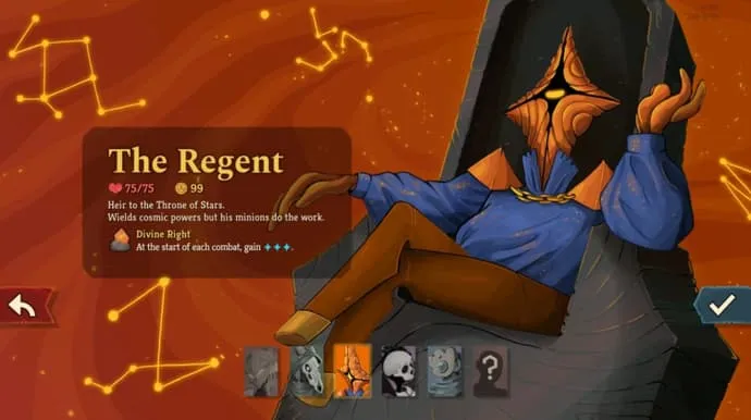 生命值75,初始资金99,初始遗物为天赋君权,每场战斗开始可获得储君能量点。