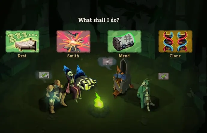 篝火有休息(回30%血)和锻造(升级一张卡)两个选项,多数时候锻造更优,关键卡牌升级后的收益远超那点血量,一局至少锻造两次,卡组强度会明显提升。
