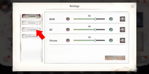 3.进入设置界面后,仔细查找并点击Language按钮,从而进入语言选择相关界面。