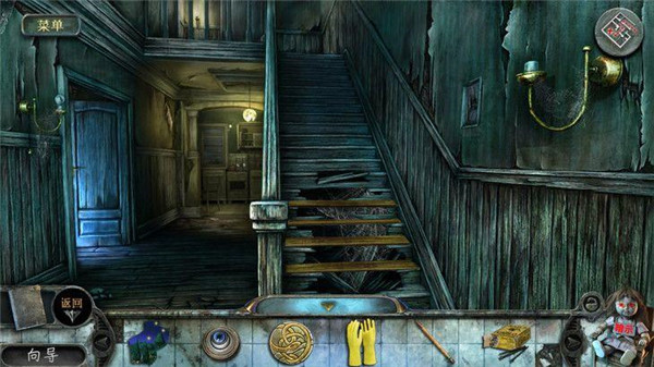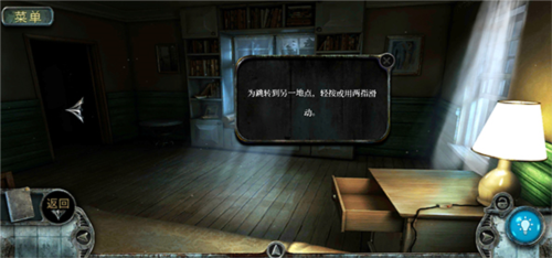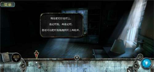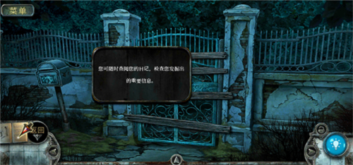 1.左侧区域功能多样,菜单按钮能让你返回游戏、退回主菜单或进入设置界面;左下角书本图标可查看已调查故事及当前解谜线索;返回键可后退一个场景;向导功能则能展示全部解谜流程。