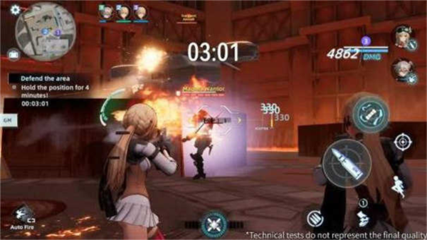 5.射击操作体验流畅,包含瞄准、换弹等核心要素,移动端提供自动开火辅助功能,角色专属闪避、跳跃等机动动作助力灵活应对Boss攻击。