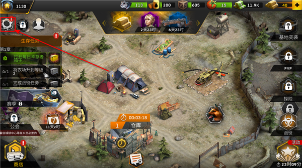 1.推荐大家先以游客模式开启游戏,完成前面阿德相关剧情章节,之后点击设置按钮。