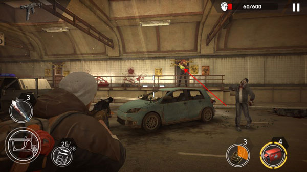 1.拖动屏幕即可调整视角,精准瞄准丧尸后发起射击。