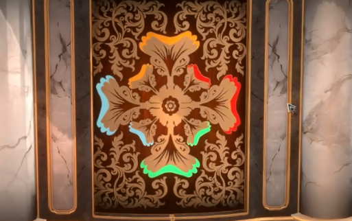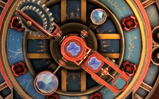 ③切换镜头至面具背后,点击中央装置旋转转盘,让两侧板块滑入卡位。
