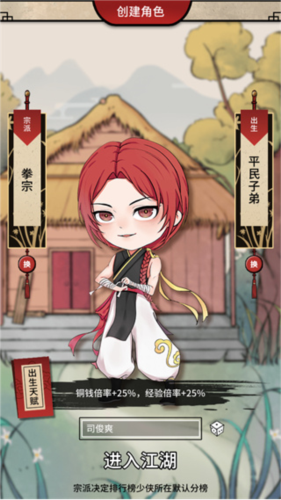 3.为你的侠客精心挑选宗派、出生背景,并定制一个悦耳的名字后踏入江湖。