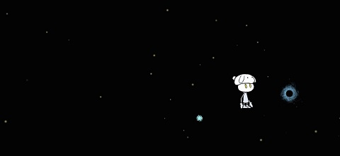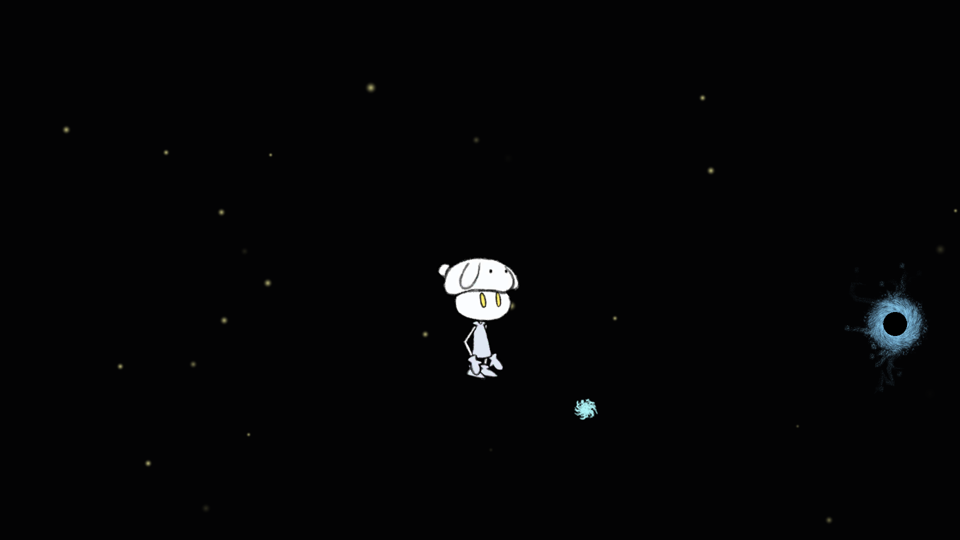 3.点击头顶的帽子,把蓝点拖至黑洞就能进入新场景。