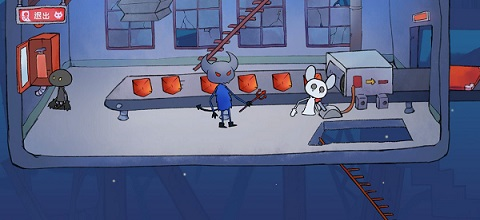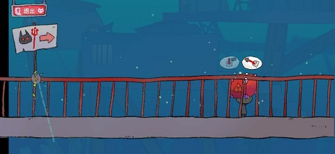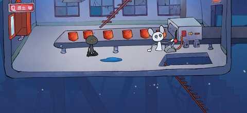 下一关让兔子黑化,然后你可以拖拽东西了,把椅子拖过去,拽拉环开门