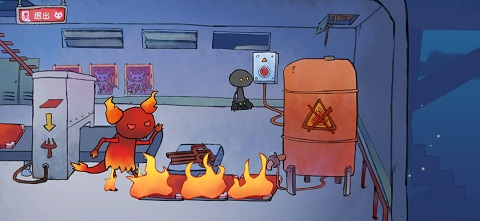 去左边拿灭火器,把右边那个火恶魔秒了(灭火器可以秒恶魔?)