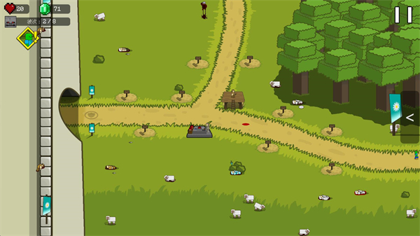 5.进入关卡后,在插着牌子的空地处可放置防御塔,不过放置需消耗宝石。