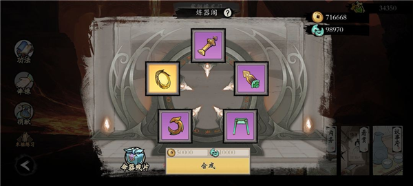 1.在宗门炼器阁进行合成,必要资源为5W铜币与1W灵石,合成不同品质所需资源相同。