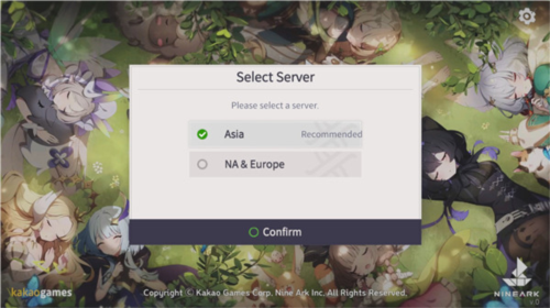 1.下载安装好游戏后进入,首先面临服务器选择,亚洲服务器在上方,建议优先选择,下方则是美洲和欧洲服务器。