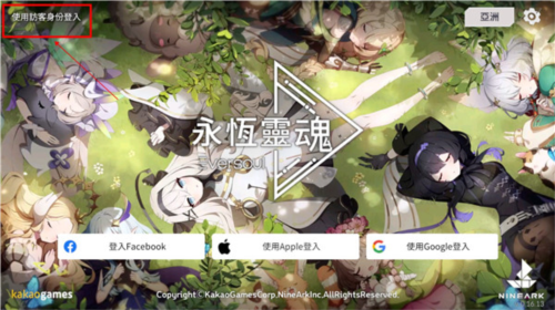 1.玩家进入游戏时,能看到三个登录渠道,也可选左上方的游客登录方式先体验游戏。