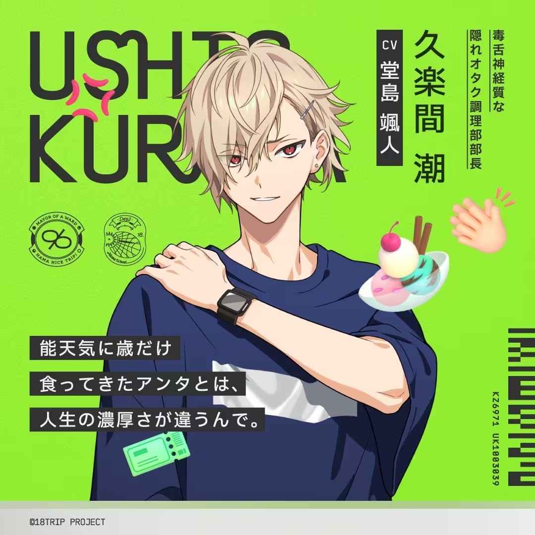 CV是堂岛飒人,是滨明日桧高中二年级学生、烹饪部部长。他是毒舌青年,能把大人怼得哑口无言,制作的巧克力点心是珍品,还是隐藏阿宅,推的大神出新刊会不正常。
