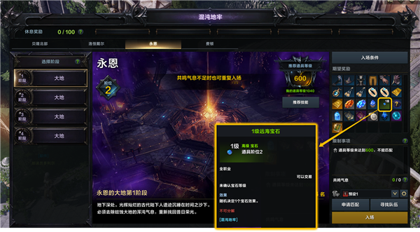 装备等级600之后的混沌地牢会随机掉落沉默回廊的门票,通过门票才可以进入首领狂潮。最后结算奖励箱子的时候,开启箱子就能获得宝石。