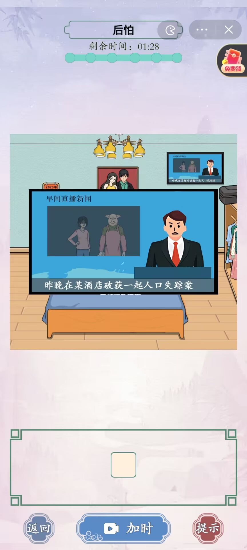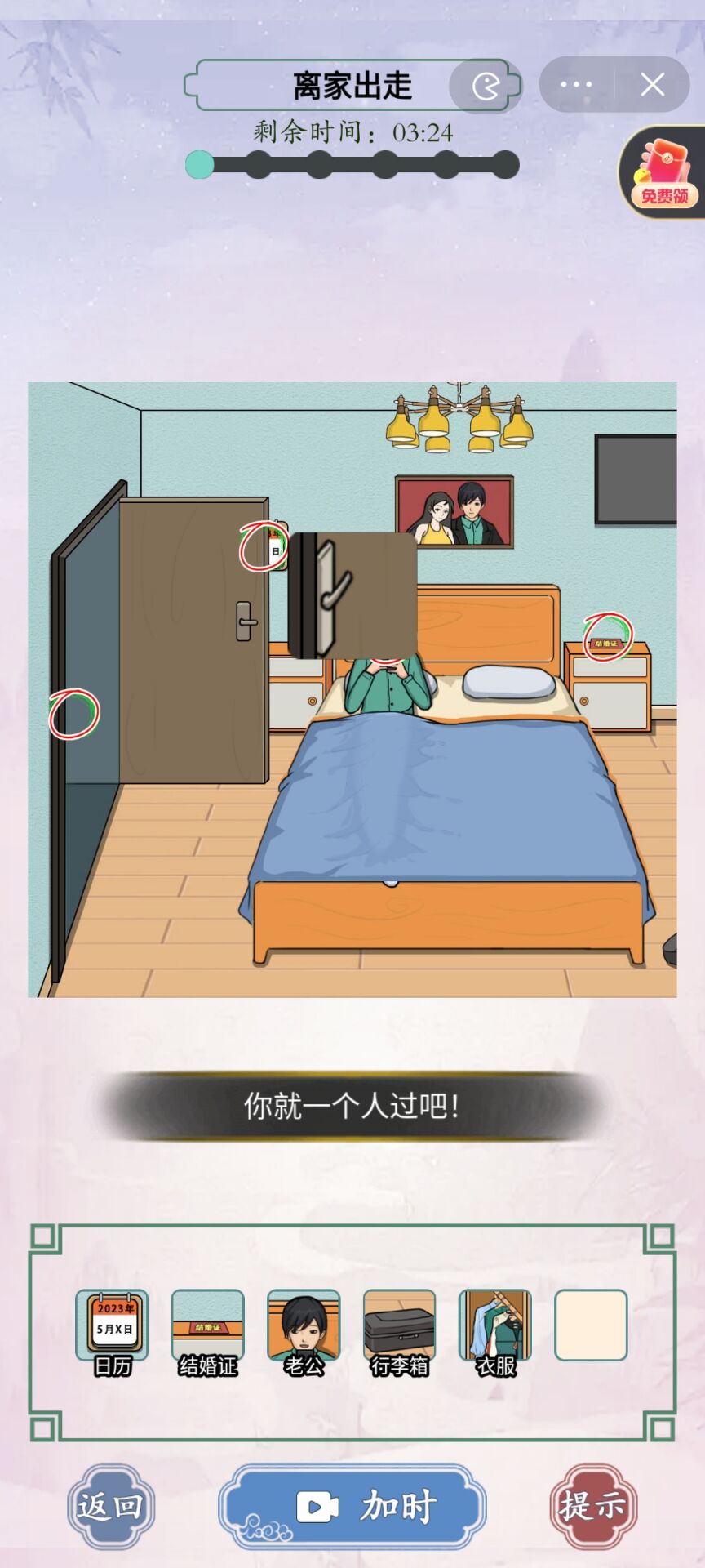 2、再点击床头柜上的结婚证;
