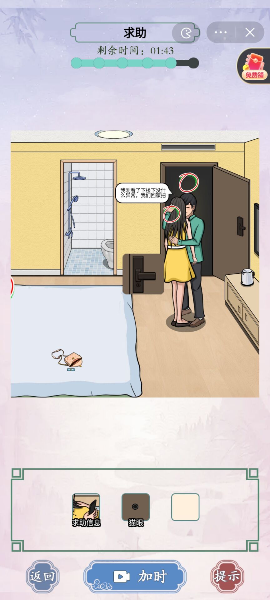 6、点击墙上的猫眼;